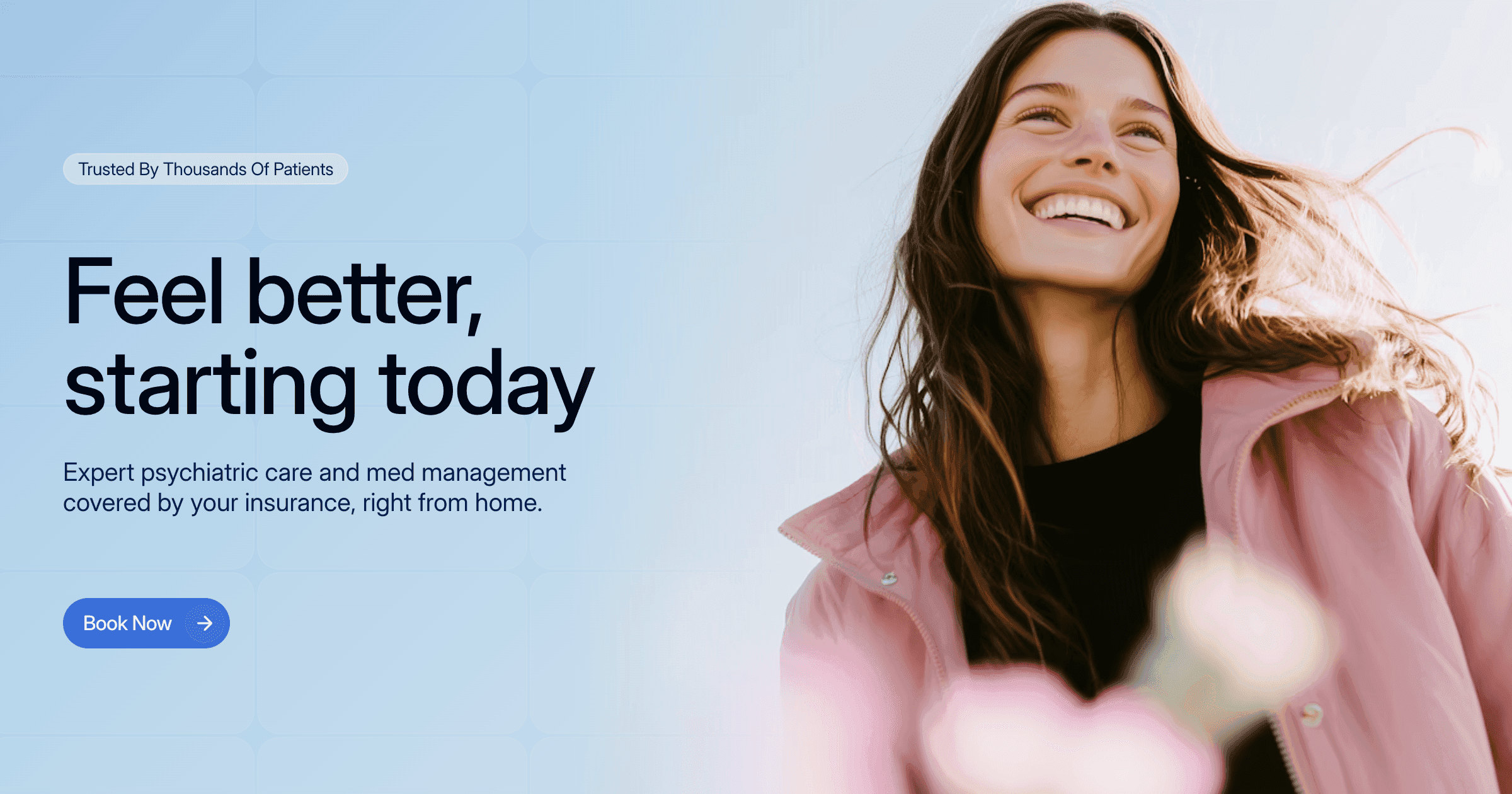 World-class psychiatric care covered by insurance. No waitlists. No referrals needed.