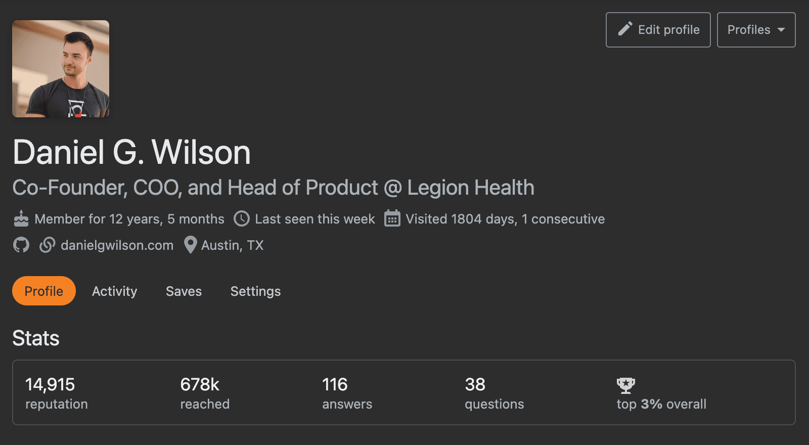 Stack Overflow (Daniel G. Wilson)—15K~ reputation